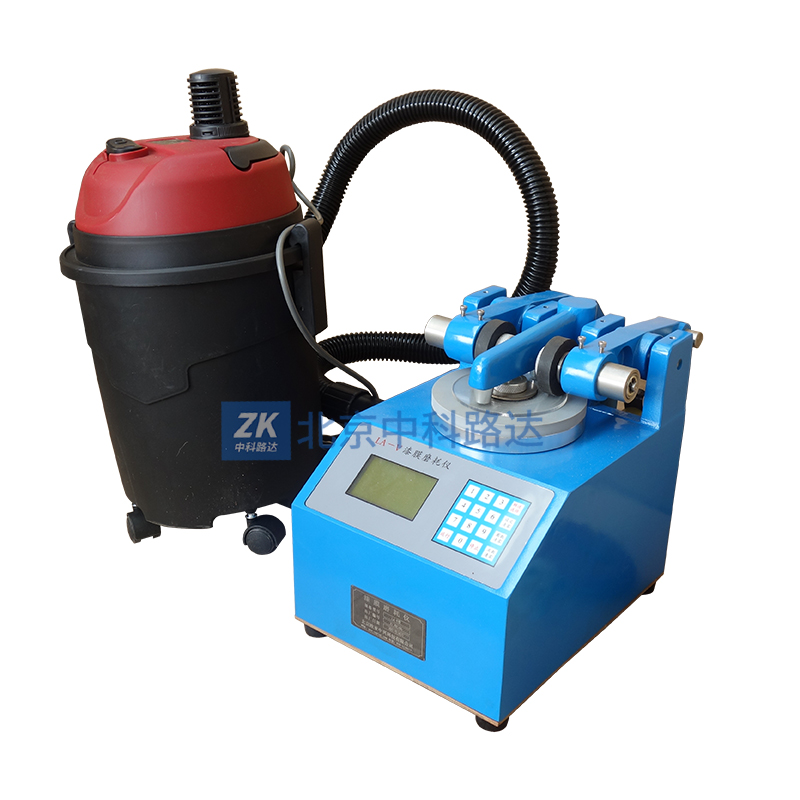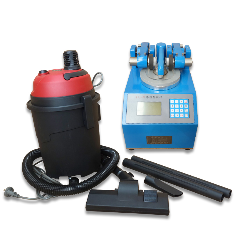 磨耗儀是將兩個(gè)相距規(guī)定距離的磨耗砂輪與安裝在水平轉(zhuǎn)盤(pán)上的試件樣板接觸,并使二砂輪的中心軸線(xiàn)與轉(zhuǎn)盤(pán)的中心軸線(xiàn)不處于同一平面內(nèi)。當(dāng)轉(zhuǎn)輪旋轉(zhuǎn)時(shí),左側(cè)一個(gè)磨耗砂輪產(chǎn)生由外側(cè)向樣板表面中心的摩擦,而右側(cè)一個(gè)磨耗砂輪產(chǎn)生由樣板表面中心向外側(cè)的摩擦。當(dāng)轉(zhuǎn)盤(pán)連續(xù)旋轉(zhuǎn)時(shí),在樣板表面就形成了一系列成網(wǎng)型相交的圓環(huán)摩擦痕跡。采用這種磨耗布置方式,使樣板表面各個(gè)方向都收到摩擦避免了一個(gè)方向往復(fù)運(yùn)動(dòng)的磨耗儀摩擦有明顯的方向性缺陷,使磨耗儀評(píng)價(jià)更具客觀性。