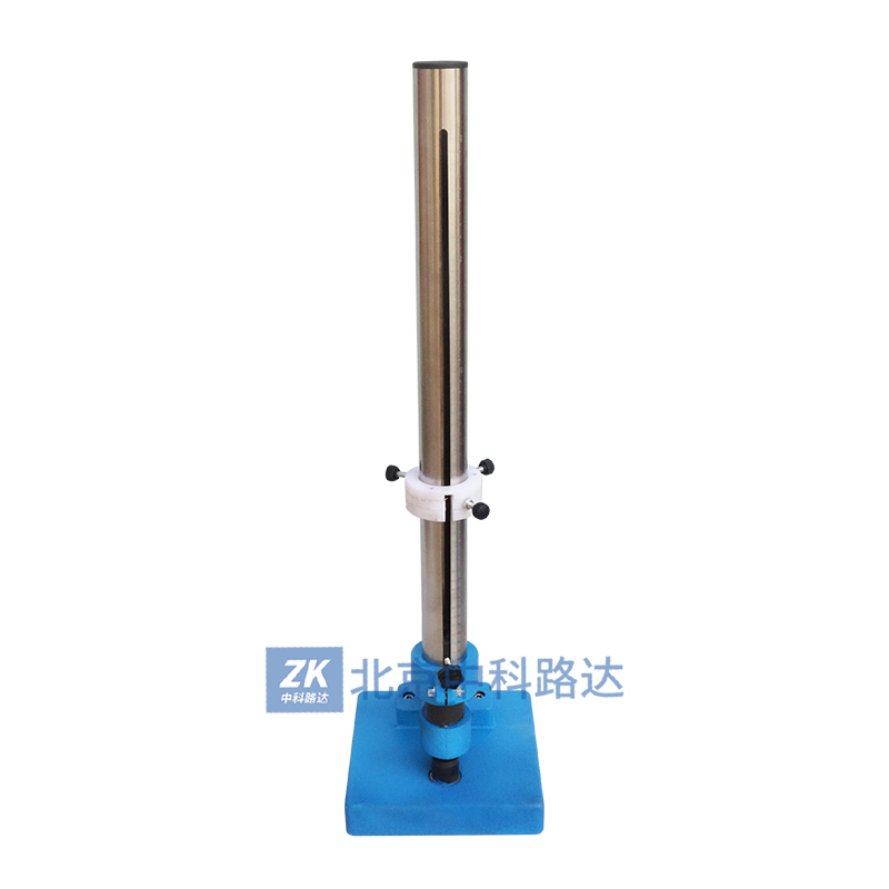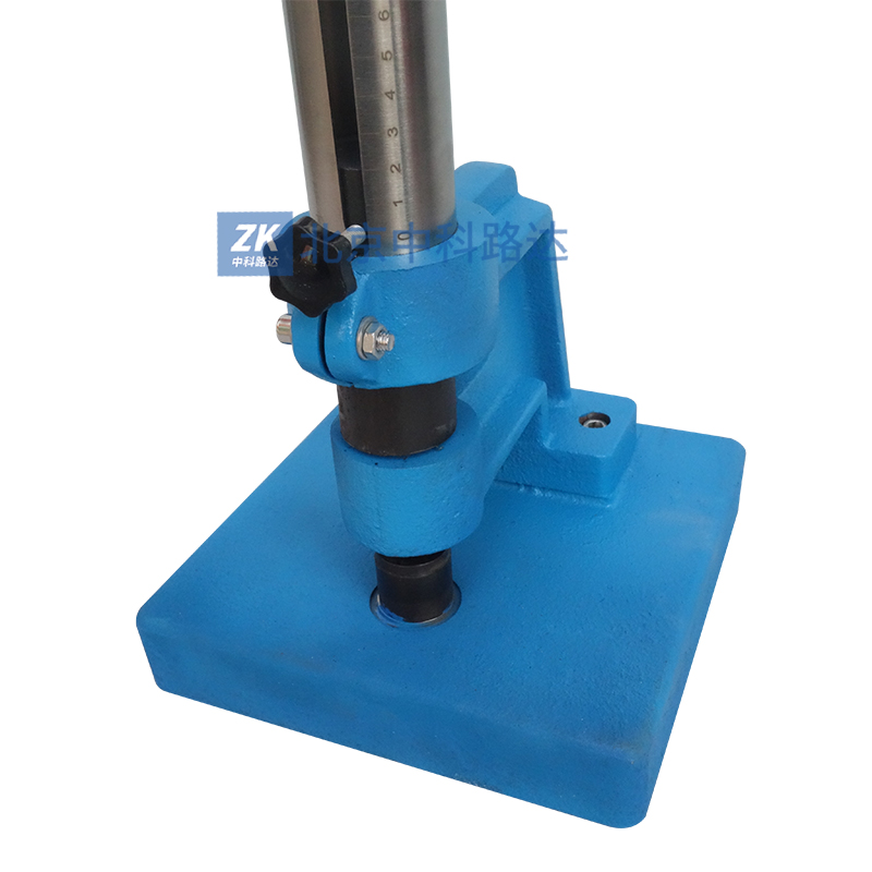 根據(jù)GB/T1732-1993《漆膜耐沖擊測定法》標(biāo)準(zhǔn)設(shè)計,利用重物從高處落下沖擊漆膜,以測定漆膜的沖擊強(qiáng)度。由控制器螺釘將重錘定在所要求的高度上,其高度由定位標(biāo)上可讀出,按壓控制器螺釘則控制器彈簧被壓縮,這時控制器滑塊的圓孔與控制器上蓋及控制器下底的圓孔對正掛鉤,使所聯(lián)結(jié)的重錘落下,撞擊沖桿,沖桿向下作用在事先放在枕墊塊上的是樣板上,之后提升重錘體,取出試驗過的樣板以觀察樣板上漆膜試驗情況。