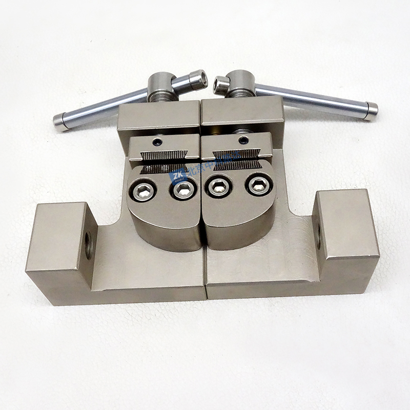 本夾具配合試驗機用于金屬絲的拉伸強度試驗??煽焖侔惭b試件,不易打滑。