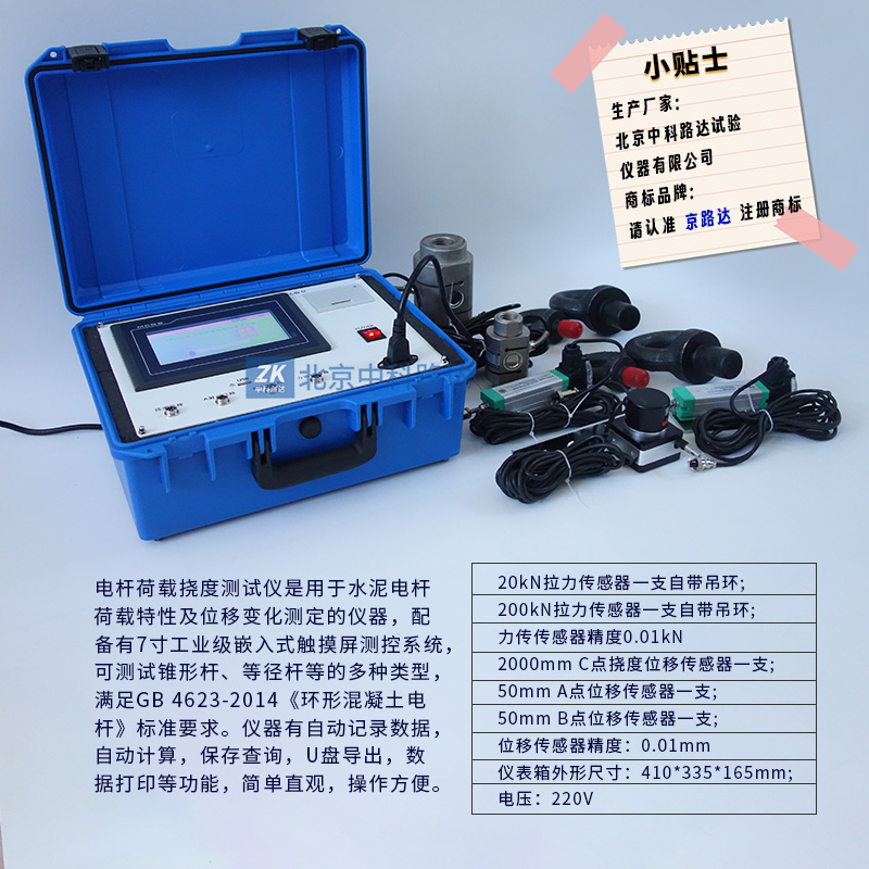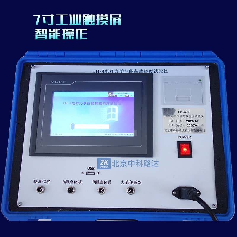 電桿荷載撓度測試儀是用于水泥電桿荷載特性及位移變化測定的儀器,配備有7寸工業(yè)級嵌入式觸摸屏測控系統(tǒng),可測試錐形桿、等徑桿的多種類型,滿足GB 4623-2014《環(huán)形混凝土電桿》標準要求。儀器有自動記錄數(shù)據(jù),自動計算,保存查詢,U盤導出,數(shù)據(jù)打印等功能,簡單直觀,操作方便。