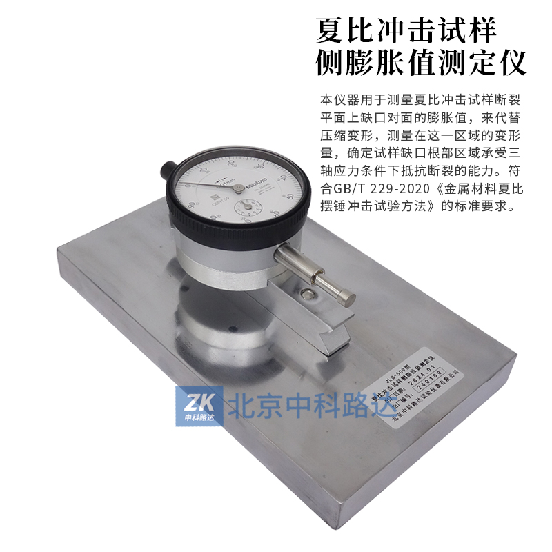 本儀器用于測量夏比沖擊試樣斷裂平面上缺口對面的膨脹值,來代替壓縮變形,測量在這一區(qū)域的變形量,確定試樣缺口根部區(qū)域承受三軸應力條件下抵抗斷裂的能力。符合GB/T 229-2020《金屬材料夏比擺錘沖擊試驗方法》的標準要求。