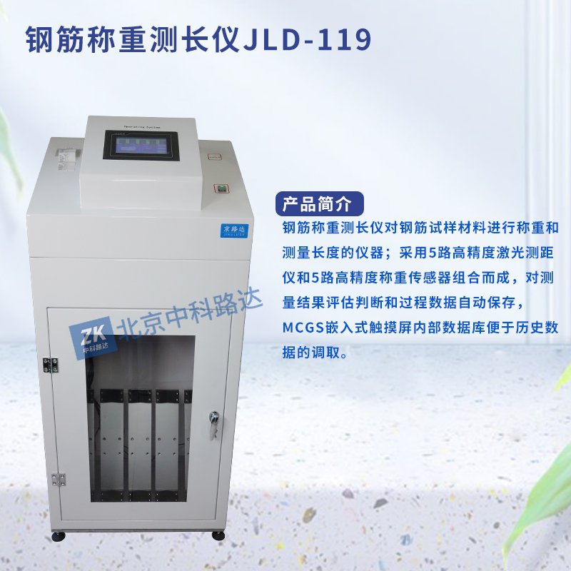 鋼筋稱重測長儀對鋼筋試樣材料進行稱重和測量長度的儀器;采用5路高精度激光測距儀和5路高精度稱重傳感器組合而成,對測量結果評估判斷和過程數(shù)據(jù)自動保存,MCGS嵌入式觸摸屏內部數(shù)據(jù)庫便于歷史數(shù)據(jù)的調取。