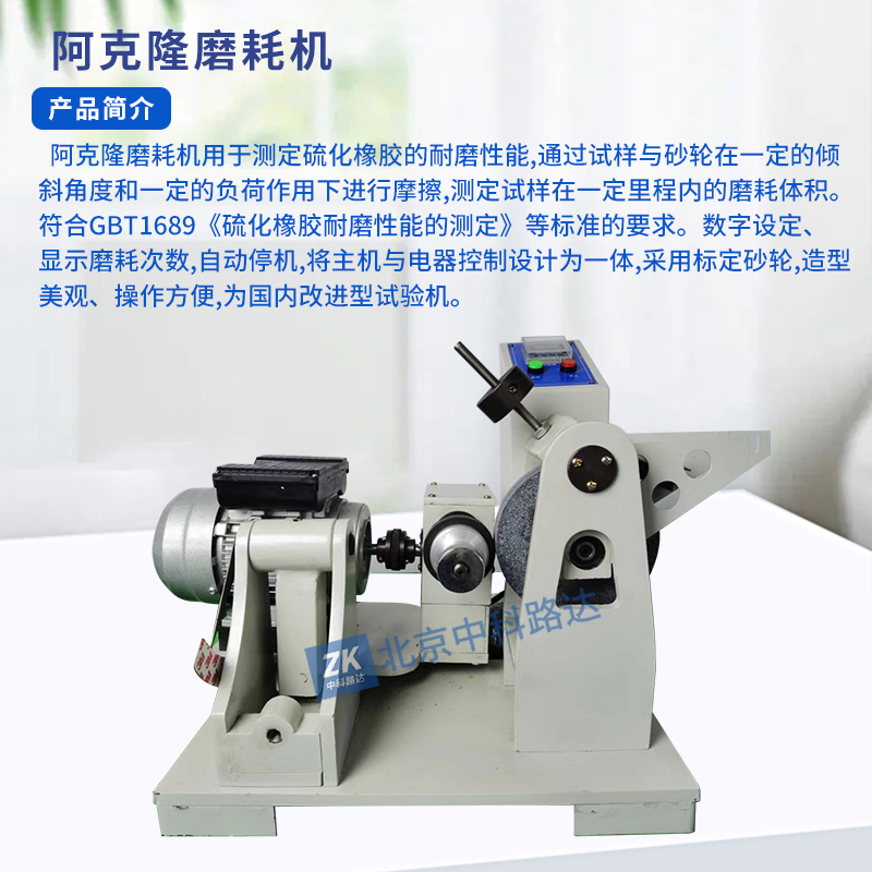 阿克隆磨耗機(jī)用于測(cè)定硫化橡膠的耐磨性能,通過試樣與砂輪在一定的傾斜角度和一定的負(fù)荷作用下進(jìn)行摩擦,測(cè)定試樣在一定里程內(nèi)的磨耗體積。符合GBT1689《硫化橡膠耐磨性能的測(cè)定》等標(biāo)準(zhǔn)的要求。數(shù)字設(shè)定、顯示磨耗次數(shù),自動(dòng)停機(jī),將主機(jī)與電器控制設(shè)計(jì)為一體,采用標(biāo)定砂輪,造型美觀、操作方便,為國(guó)內(nèi)改進(jìn)型試驗(yàn)機(jī)。