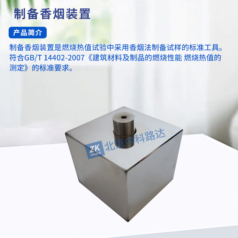 制備香煙裝置是燃燒熱值試驗(yàn)中采用香煙法制備試樣的標(biāo)準(zhǔn)工具。符合GB/T 14402-2007《建筑材料及制品的燃燒性能 燃燒熱值的測(cè)定》的標(biāo)準(zhǔn)要求。