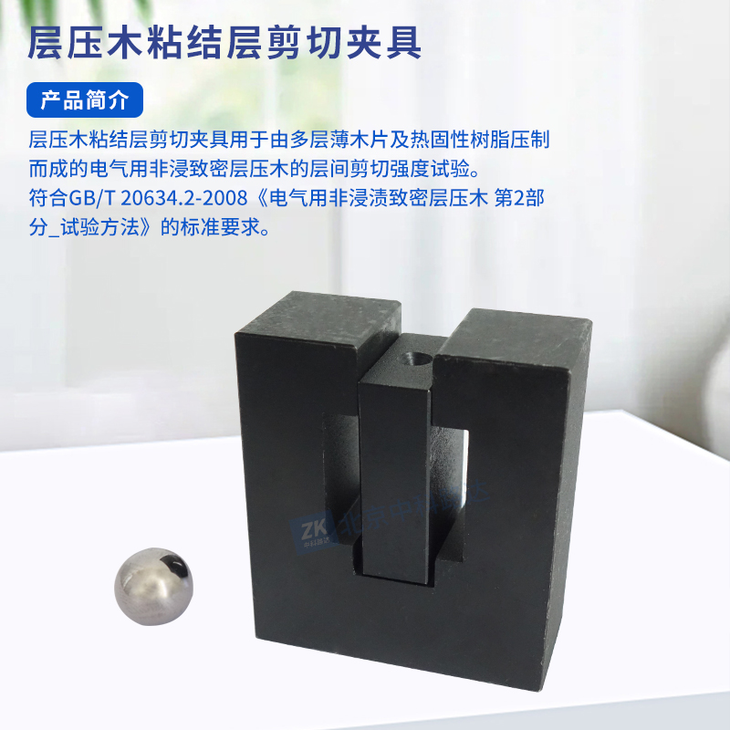層壓木粘結(jié)層剪切夾具用于由多層薄木片及熱固性樹脂壓制而成的電氣用非浸致密層壓木的層間剪切強(qiáng)度試驗(yàn)。符合GB/T 20634.2-2008《電氣用非浸漬致密層壓木 第2部分_試驗(yàn)方法》的標(biāo)準(zhǔn)要求。