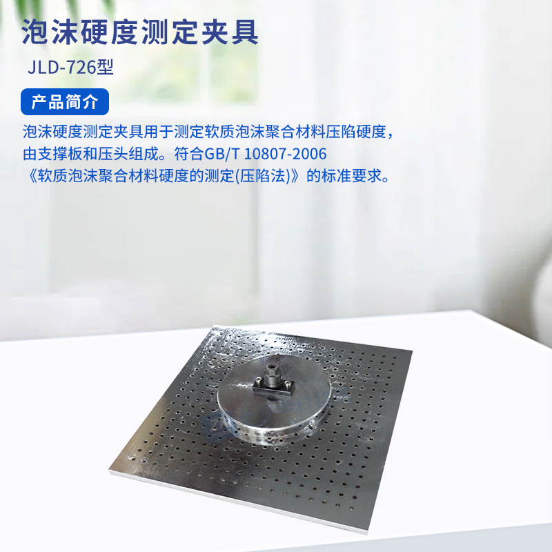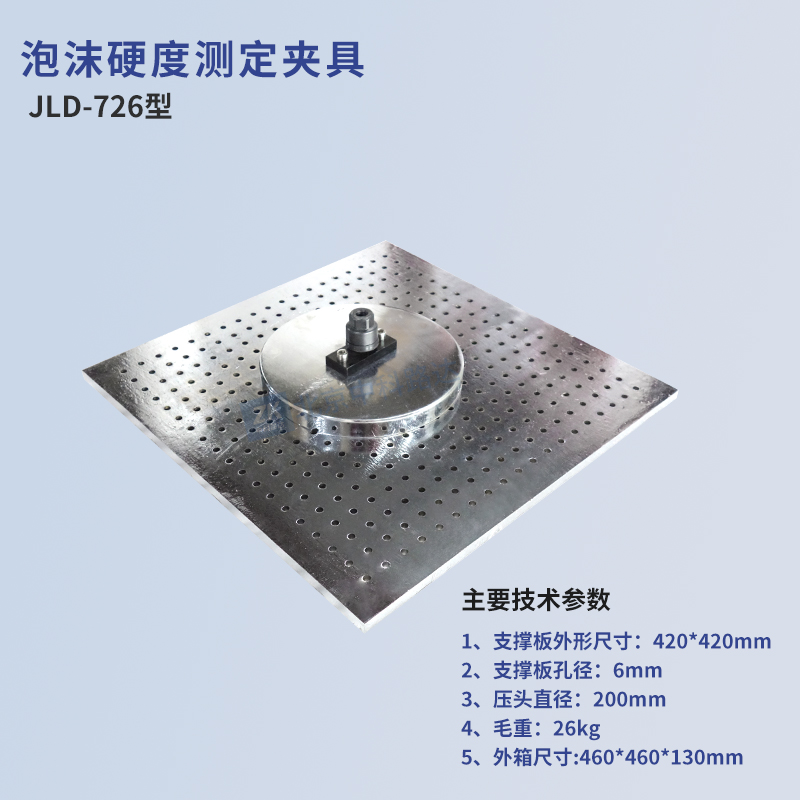 泡沫硬度測定夾具用于測定軟質泡沫聚合材料壓陷硬度,由支撐板和壓頭組成。符合GB/T 10807-2006《軟質泡沫聚合材料硬度的測定(壓陷法)》的標準要求。