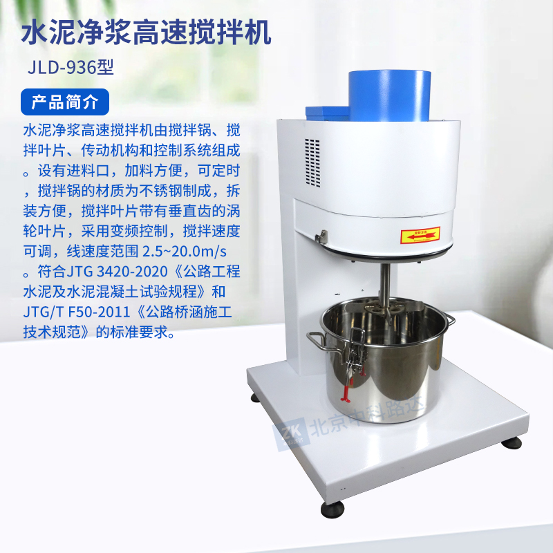 水泥凈漿高速攪拌機(jī)由攪拌鍋、攪拌葉片、傳動機(jī)構(gòu)和控制系統(tǒng)組成。設(shè)有進(jìn)料口,加料方便,可定時,攪拌鍋的材質(zhì)為不銹鋼制成,拆裝方便,攪拌葉片帶有垂直齒的渦輪葉片,采用變頻控制,攪拌速度可調(diào),線速度范圍 2.5~20.0m/s。符合JTG 3420-2020《公路工程水泥及水泥混凝土試驗規(guī)程》和JTG/T F50-2011《公路橋涵施工技術(shù)規(guī)范》的標(biāo)準(zhǔn)要求。...